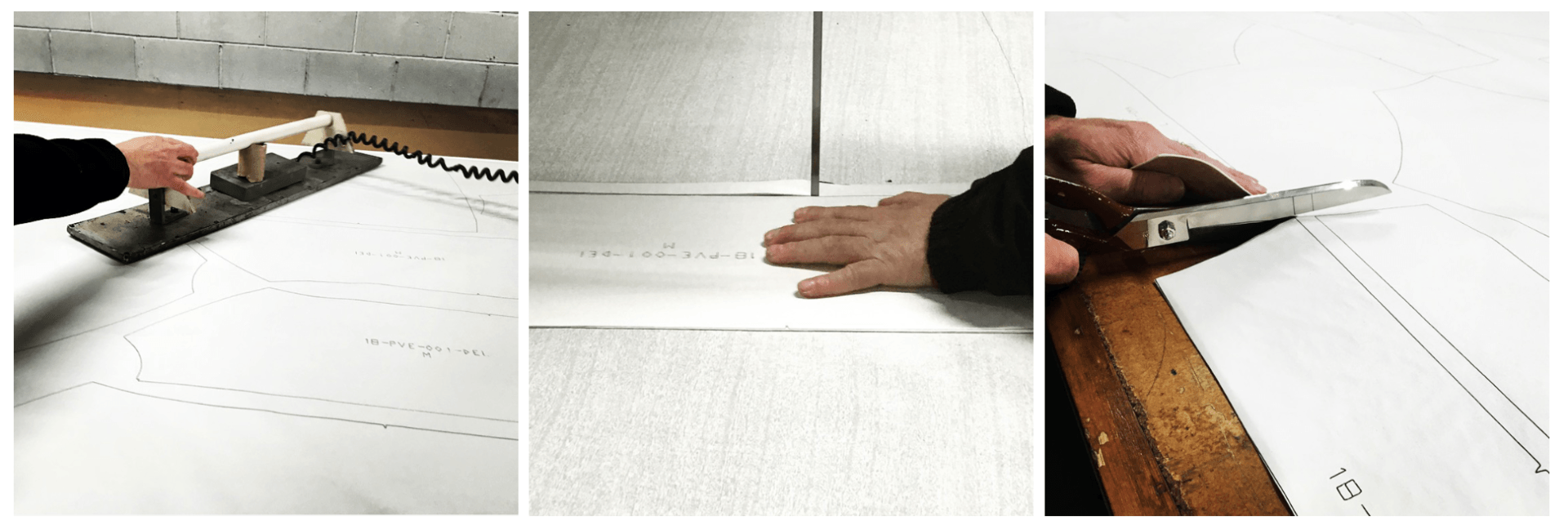 - El tall de tots els nostres teixits es fa de forma manual, cuidant fins al més mínim detall, deixant-los reposar en funció de la composició, reescalant els patrons en funció de l'encongiment... i a làser quan necessitem la màxima precisió, com és el cas de les jaquetes de PRIMALOFT® o de les jaquetes termosegellades: